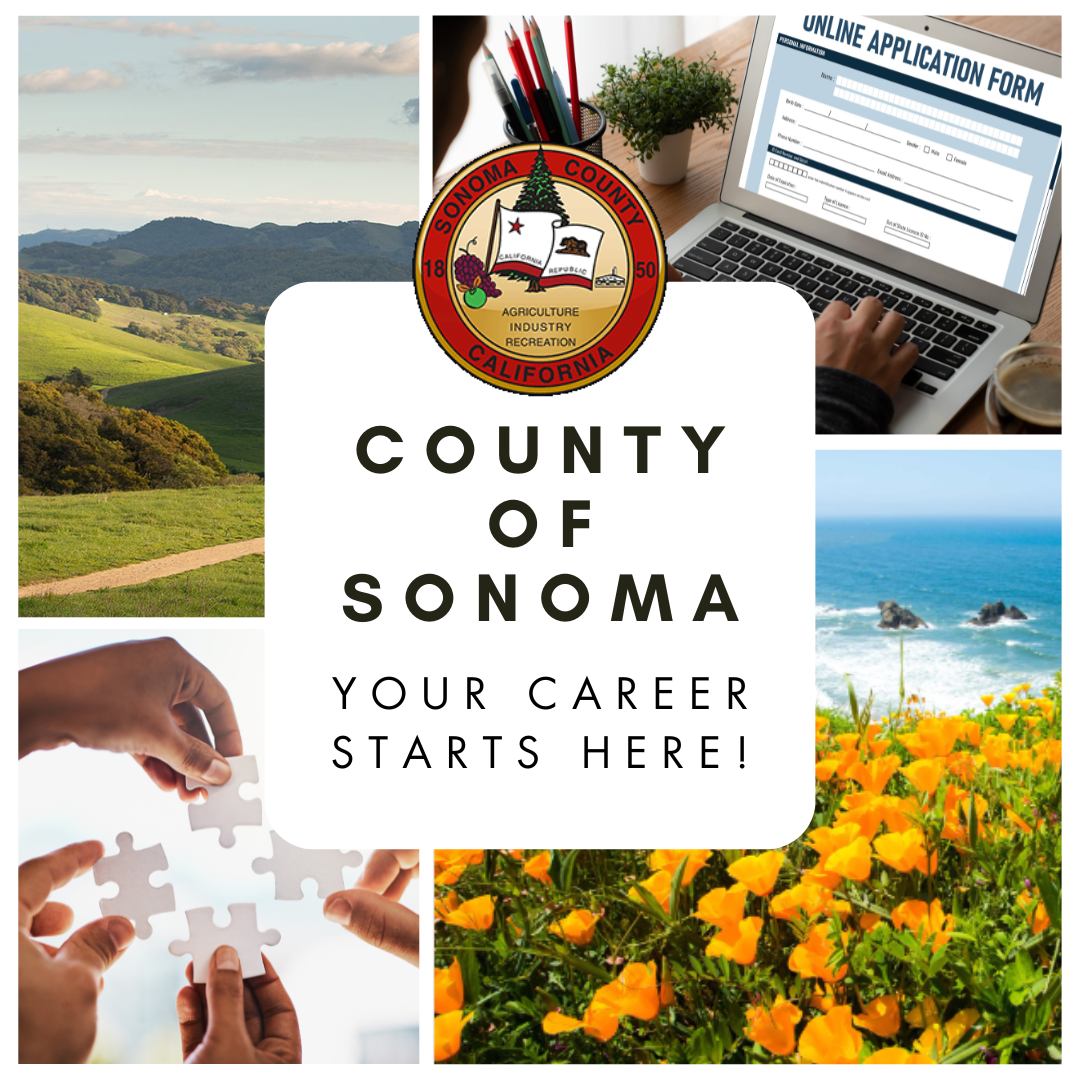 If you have any questions or if you have a disability that requires an accommodation, an alternative format, or requires another person to assist you while attending this meeting, please contact the Human Resources Department at careers@sonomacounty.gov as soon as possible to ensure arrangements for accommodation.